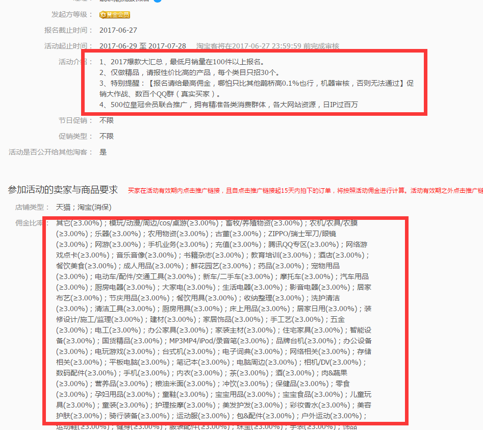 注意!如果在淘宝客在推广过程中索要服务费,我们就直接不用理了。我们做大型的热销活动的时候,如双十一,双十二这种,就可以去报满我们的活动。这个时候是最好的获取流量的时机。